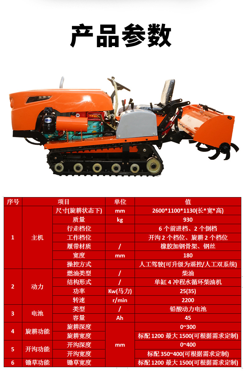 烟台成峰机械科技有限公司发布的批发3TC-35-2履带式拖拉机开沟旋耕除草起垄水田两用履带拖拉机图集库