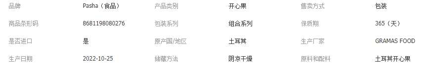 格马瑟(上海)食品有限公司发布的开心果土耳其原装Pasha帕夏原味熟制烘烤坚果一件代发包邮图集库