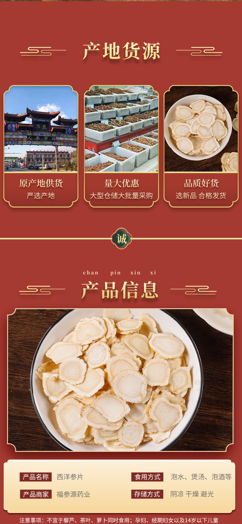 亳州市福参源药业有限公司发布的西洋参片长白山西洋参花旗参6年软质根系切片散装 规格全产地批发图集库