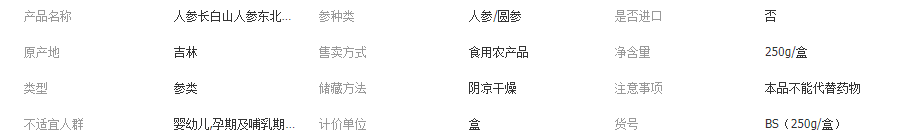 抚松参品参业有限公司发布的【净重半斤】盒装人参长白山人参东北特产干人参生晒参白皮参图集库