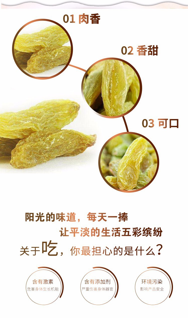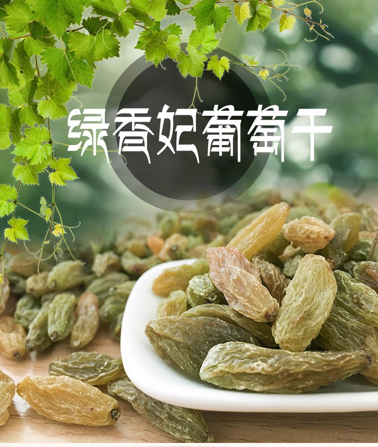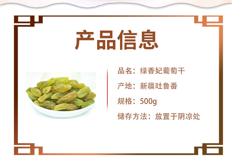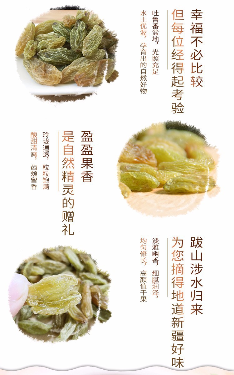阿拉尔市泽疆商贸有限公司实力供应商发布的新疆特产新货吐鲁番绿香妃王大果500g袋装*2大颗粒葡萄干粒长肉满图集库
