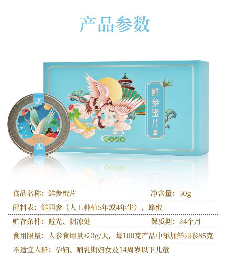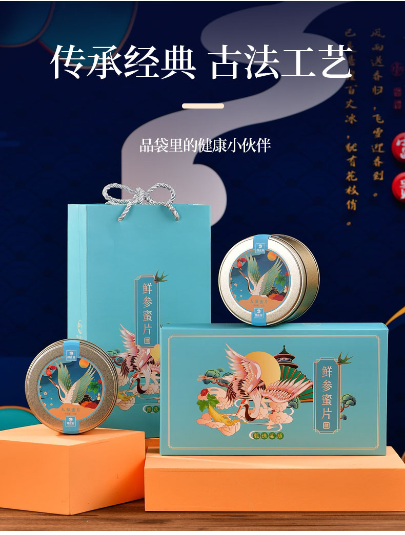 吉林省一品参乡生物科技有限公司发布的人参蜜片 东北特产礼盒装50g*2盒/套开袋即食 高端送礼图集库