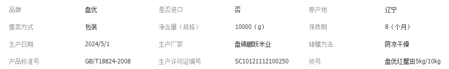 盘锦鹏跃米业有限公司发布的盘优 东北大米 蟹田大米 5斤 10斤 20斤图集库