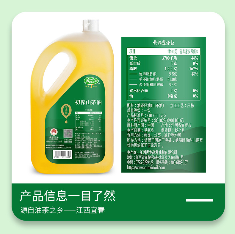 江西青龙高科油脂有限公司发布的润心2L头道初榨山茶油低温压榨茶籽油团购礼品招代理直供可议价图集库