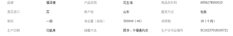 山东福泽康食用油有限公司发布的福泽康浓香压榨一级食用油 粮油 植物油 批发商用纯正花生油5L图集库