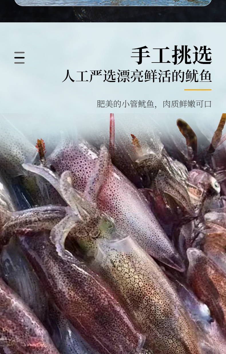 东山县西埔镇海客水产品厂发布的福建东山岛名片活小管活冻刺身鱿鱼鲜活灯光诱捕软体餐饮生鲜批发图集库