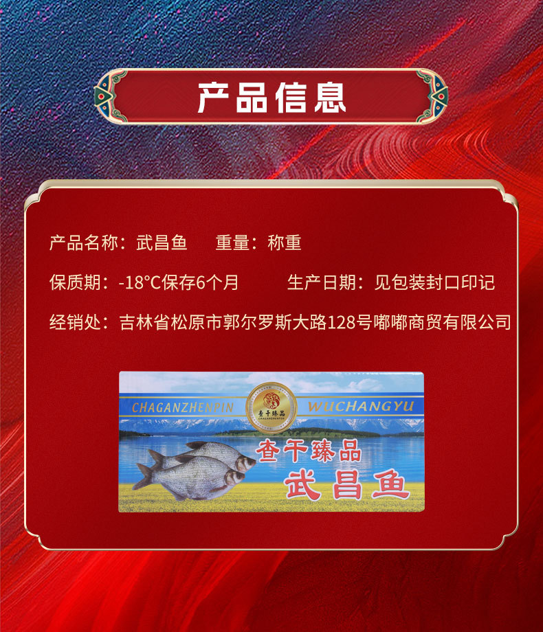 松原市查干臻品农贸有限公司发布的武昌鱼批发鱼场新鲜冬捕武昌鱼春节餐桌查干武昌鱼真空礼盒装鱼图集库