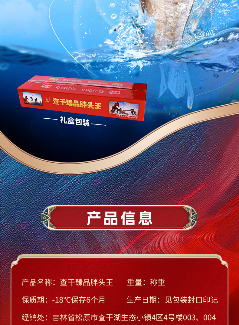 松原市查干臻品农贸有限公司发布的鱼场批发冬捕鱼整条胖头鱼批发新鲜冷冻淡水鱼佳节礼品胖头鱼家用图集库