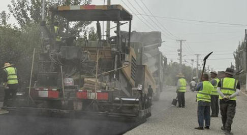 民生无小事,道路系民心。近日,在沙雅县努尔巴格乡振兴村的道路改造提升工程现场,摊铺机、压路机紧张作业,施工人员忙着摊铺沥青、平整路面,一派热火朝天的繁忙景象。