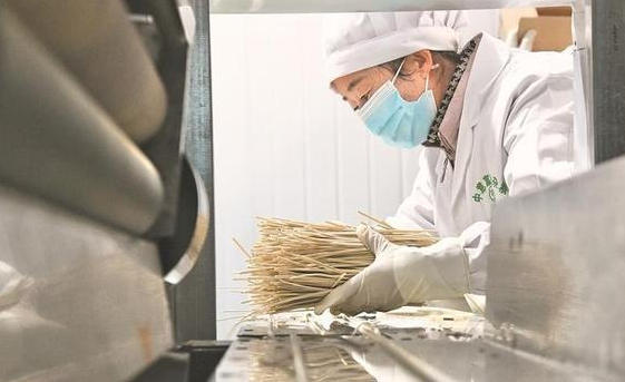 近日,海东市中意富硒杂粮开发有限公司的挂面生产车间里,和面、醒发、压饼、盘条……工作人员在有条不紊地操作着每一道工序,而后转入晾晒包装区,经过熟化、烘干、切段、包装、密封等流程后,一箱箱青稞、荞麦挂面“整装待发”。